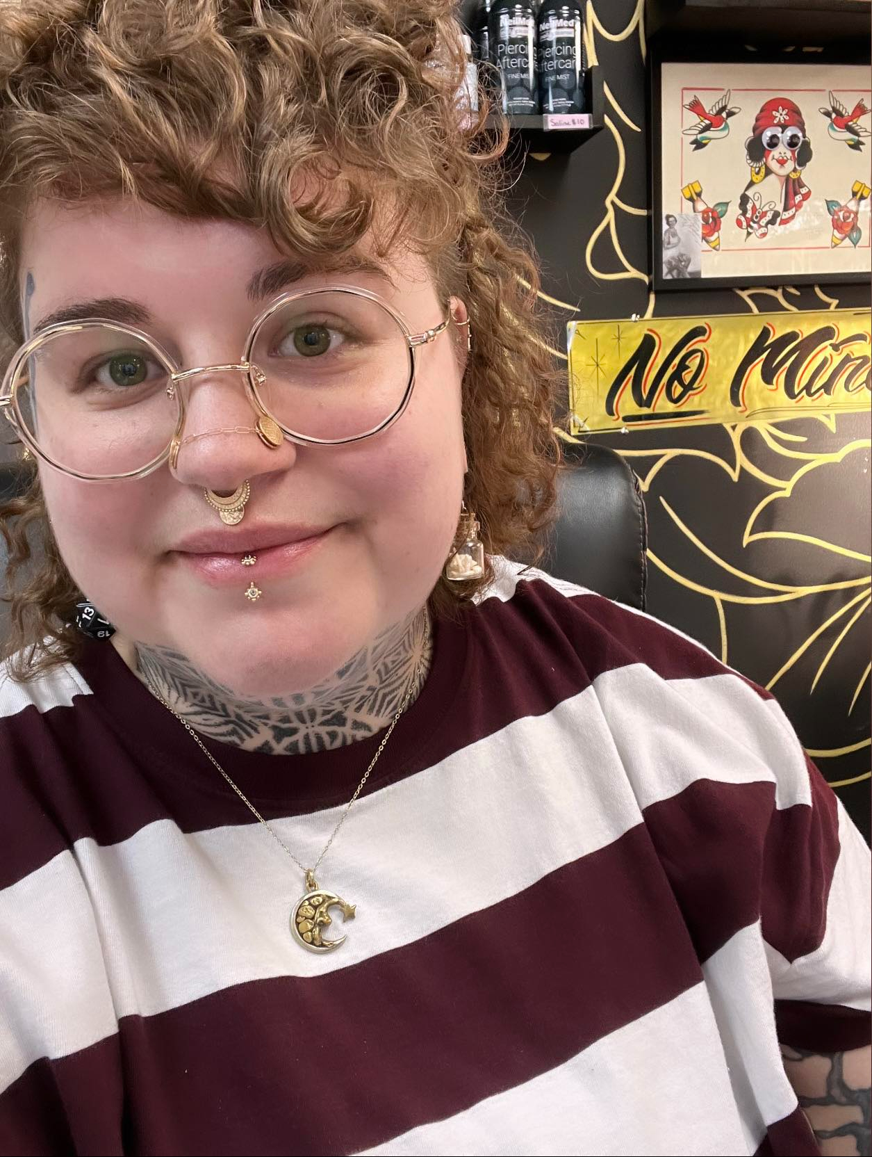 Natasha started working in the Tattoo industry in 2014 and has been managing tattoo studios since 2015. They joined the MLNT team in 2020 and has become an integral part of the studio. When they aren’t at work you can find them hanging out at home with their two cats and dog, gardening, listening to true crime podcasts, or making art. You will see Worm around MLNT Monday-Friday!